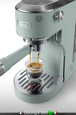 اسپرسوساز دلونگی مدل EC890 با رنگ سبز ملایم و طراحی مدرن، جلوهای خاص به آشپزخانه شما میبخشد. این دستگاه با ابعاد مناسب و بدنهای از جنس استیل ضدزنگ، علاوه بر دوام بالا، ظاهری شیک و جذاب دارد. طراحی ارگونومیک و کاربرپسند آن، استفاده از دستگاه را برای کاربران راحت و لذتبخش میکند.