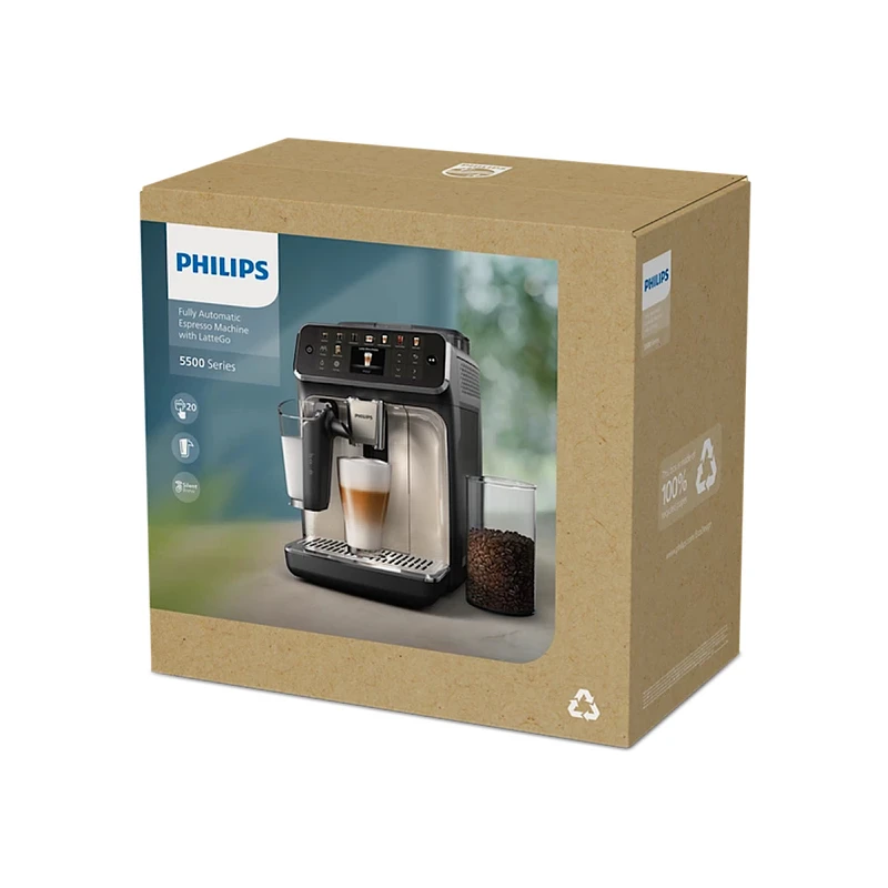 اسپرسوساز فیلیپس EP5547/90 از سری ۵۵۰۰ یک دستگاه قهوهساز تمامخودکار بسیار قدرتمند است که با ترکیب تکنولوژیهای پیشرفته، طراحی کاربرپسند و ظرفیت بالا برای افرادی که قهوهسازی حرفهای در خانه را جدی میگیرند، گزینهای فوقالعاده محسوب میشود. این دستگاه امکان انتخاب میان ۲۰ نوشیدنی گرم و سرد را در اختیار شما میگذارد و به لطف مخزن شیر LatteGo و آسیاب سرامیکی با تنظیمات متعدد، تجربهای حرفهای در کافیشاپ را در آشپزخانهتان تداعی میکند.